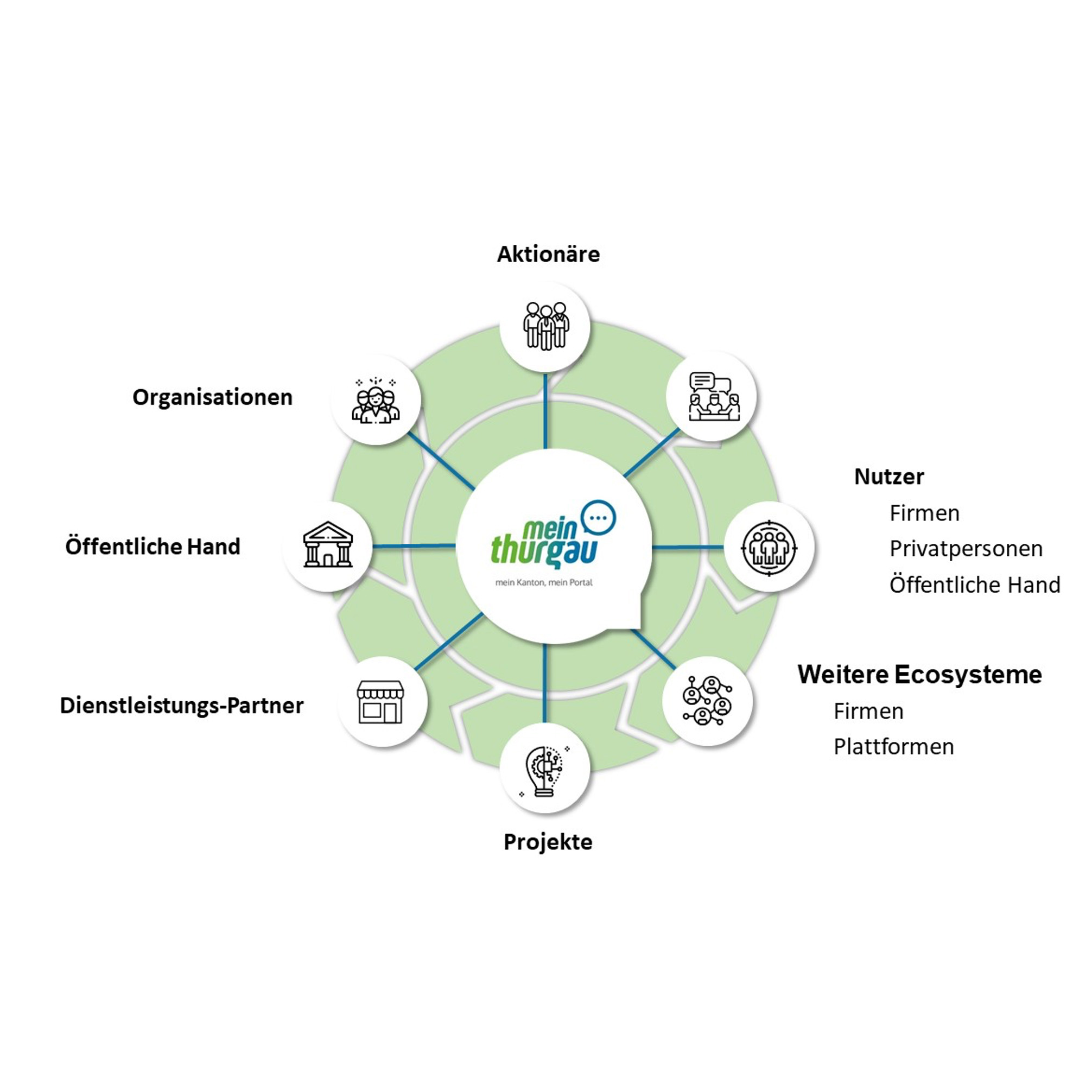 Das Ecosystem meinThurgau ist eine Plattform auf der verschiedene Anspruchsgruppen zusammengebracht werden um die Digitalisierung im Kanton Thurgau zielgerichtet voranzubringen. Wir sind eine grosse Community, welche Nutzer die öffentliche Hand, Partner, Organisationen Aktionäre zusammenringen. Gemeinsam werden Digitalisierungsprojekte von der Idee bis zur Umsetzung gebracht. Durch die Vernetzung mit weiteren Ecosystemem bieten wir den Zugang zu weiteren überregionalen Plattformen. Zusammen mit verschiedenen Hochschulen, Ausbildungsinstitutionen und dem Verein Smarter Thurgau entwicklen wir neue Ansätze für die Digitalisierung.